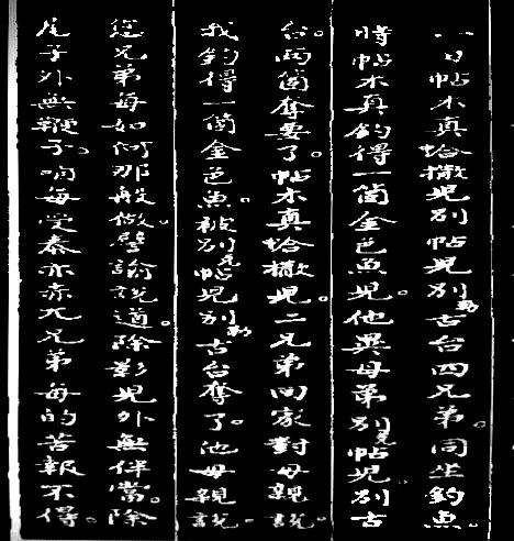 如上图中用汉字音写的蒙古原文和译文都是用繁体字写成。 例如;“儿-児、边-邉、孙-孫、讷-訥、额-額、关-関……”等。如果将说唱艺人的所保存的民族文字的说唱底稿加以汉字信息化处理,是否也应以《元朝秘史》中出现的繁体字为标准,进行处理呢。因为在汉语里一音多字的情况是非常之多,一个蒙古语音节或单词中可能会出现多个相同发音的汉字,在这种情况下,我们用什么标准来选择相应的字词呢?这是文字数据化处理时必须要解决和处理的一个规范化的问题。从另一个角度,就对于古籍文献中简繁体的应用而言,如果将民族说唱文字写底稿用以简体字音写的方式来转换处理,在检索或利用数据时,会不会和已被数字化处理的文献产生连贯上的冲突,是我们所关心的问题。