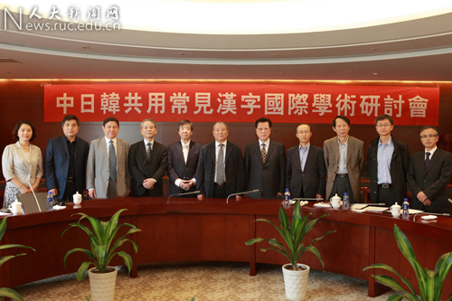 10月23日至24日,中日韩共用常见汉字国际学术研讨会在中国人民大学召开。中国人民大学老校长纪宝成教授,副校长杨慧林教授,京都大学阿辻哲次教授,日本汉字能力检定协会山崎信夫、高木纯夫,韩国仁济大学硕座教授、国际汉字振兴协议会会长陈泰夏教授,韩国汉字教育研究会理事长、韩文教师中央研修院李权宰教授以及中国人民大学共用常见汉字课题组成员耿幼壮教授、申淑子副教授、赵彤副教授、吴永焕副教授等参加会议。中国新华社、日本经济新闻社、韩国中央日报社有关人员列席会议。