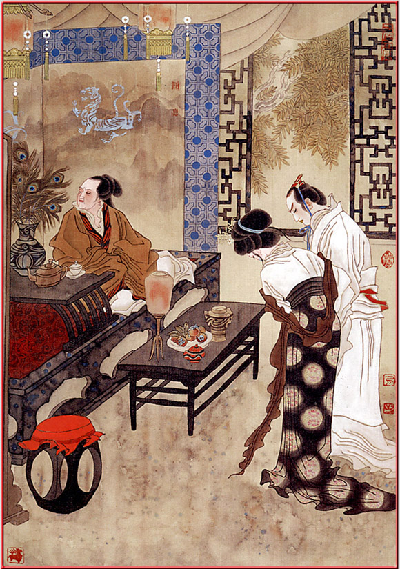 第三层“新妇起严妆”这一节,是全诗最精彩的段落之一。作者写兰芝辞归,既没有描述她如何泪流满面、叹息不止,也不去抒发她无端被遣的债懣和不平,而是用大量笔墨来写她的美丽形态、华贵装饰,以及告别时不卑不亢、从容既定的举止和风度,透过这个华采乐段,奏出了作者正义的心声:这位新妇不但勤劳能干、忠于爱情,而且是举世无双。那位“可怜体无比”的东邻女,不但缺乏兰芝高尚的心灵,也没有她如此美丽的外貌。焦母竟然把这样的媳妇驱遣回家,真是太蛮横无理了。值得注意的是,作者在描绘兰芝严妆时,还有意先叙“著我綉夹裙,事事四五通”,然后再叙其如何穿戴打扮。有人认为这是诗序上错乱了,这两句应在“耳著明月珰”之后,其理由是:“既然说事事四五通,就不只一事,理应包括后面的躡履、戴簪、著衣诸事。而论次序,下床应先著鞋,然后再梳头、换衣,最后著裙”(《余冠英《乐府诗选》》。我认为这并不是诗序错乱,而是我国古典诗歌中常用的倒装法。在本诗中,这种倒装法在表现主题、塑造人物形象上,至少有以下三个作用:首先强调「事事四五通」,极力渲染兰芝在遭侮辱、被驱遣之时,仍刻意修饰,她不愿蓬头垢面见焦母,也不愿哭哭啼啼离夫门,而要以「精妙世无双」的形象去辞行,这就更加表现出她在恶势力面前,不愿俯首乞怜的倔强性格;其次,因为兰芝对仲卿还是心怀眷念、依依不捨,所以临行时,强调她对一衣一饰著而复脱,下意识延宕时间。「事事四五通」,意在藉此延迟离别时刻的到来,表现了兰芝不忍离去、又不得不离去的极为痛苦矛盾的心情;再次,强调兰芝对衣著反覆穿戴数次而不得妥贴,也活画出兰芝在与仲卿离别时,极度的心烦意乱之状。总之,这段描述极为精妙,表现了作者高超的艺术技巧。