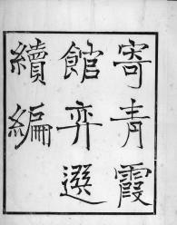北图版《续刻弈选》书名页(图一)为后期电脑制作,这可能是出于丛书统一编排的需要,该页注明了作者(王存善辑)及刻印时间——清光绪二十一年刻本。而《弈选续编》书名页(图二)为“寄青霞馆弈选续编”八个大字,笔意古拙;其后牌记(图三)曰“光绪二十三年岁在丁卯刻于广州”。