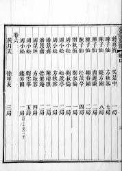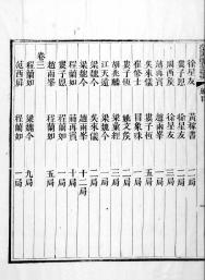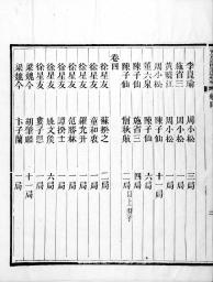 北图版《续刻弈选》卷二目录(图六至图八)中,显示本卷全是国手授二子、三子以及四子局,止于程兰如授程乐田四子局,合计六十九局。而据《弈选续编》广州本,第一、二、三卷为国手对子谱,第四、五、六卷为国手授二子、三子、四子谱,止于范西屏授倪克让四子局,总数决不止区区六七十局(图九至图十五)。
