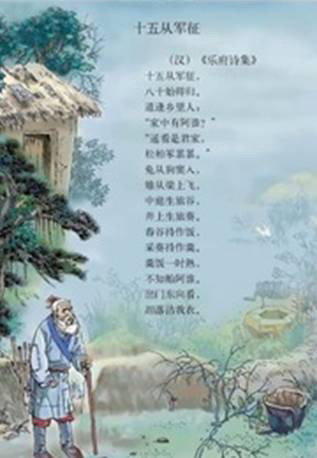 国学这首诗着意通过一个戍边达六十五年的老兵归来后的所见所感,叙述长期征战给他带来家破人亡的惨剧。并通过这位因战乱失去一切的这位老兵遭遇,深刻地揭露了汉代对外长期战争和残酷的兵役制度,给百姓带来的深重灾难。有的论者以为“十五从军征,八十始得归”是文学的夸张,“诗中的‘十五’和‘八十’是个约数,并非实指”。我不这样认为。我以为这不但不但是实指,而且还并非汉代仅有。南朝的沈约就说他曾目睹“西府兵士或年几八十而犹伏泉,或年始七岁而已从役”(《宋书·自序》);唐代的杜甫也以一个目击者的身份指出天宝年间的士兵戍守也是“或从十五北防河,便至四十西营田。去时里正与裹发,归来白发还戍边”(《兵车行》)。据吴兢《乐府古题要解》,此诗晋时已谱入乐府,应当可视之为汉魏之际反映战乱的写实之作。