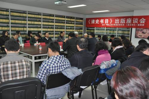 由中国人民大学清史研究所、《清史研究》编辑部主办的“《清史书目》出版座谈会”于11月22日在中国人民大学清史文献馆举行。来自国家清史编纂委员会、中国社会科学院、中国社会科学出版社、中国人民大学出版社、北京师范大学、中国人民大学清史研究所和历史系的数十位学者及《中华读书报》、《中国社会科学报》等媒体记者出席。