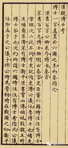 秦播书籍,而置博士学官。博者,博通于艺事也。——《汉书·百官公卿表注》