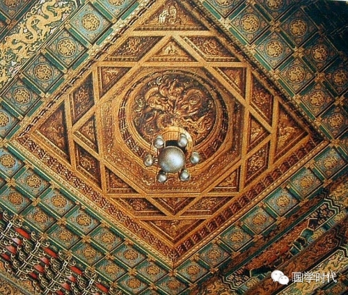 寺庙等宗教活动场所的屋脊或廊檐下,也会镶嵌明镜,以确保妖魅退避,不打扰神明。甚至在故宫的“金銮殿”也就是太和殿内,九龙宝座顶上的藻井正中,也有一个口中倒垂着一个大圆球的蟠龙,寓意明镜高悬,以求辟邪呈祥。