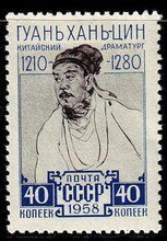 1958年6月20国家邮电部发行的纪念《关汉卿戏剧创作七百年》邮票一套3枚;苏联于1958年发行的纪念关汉卿邮票