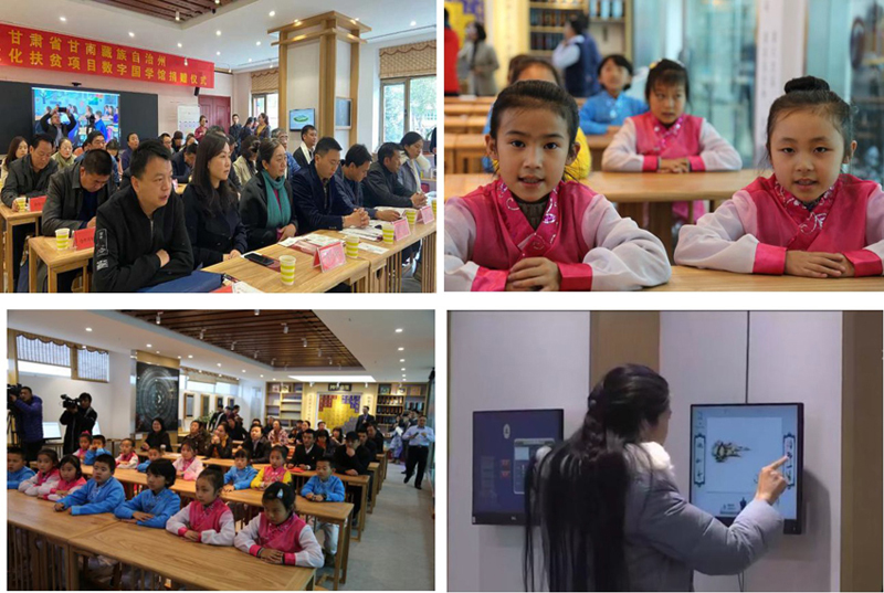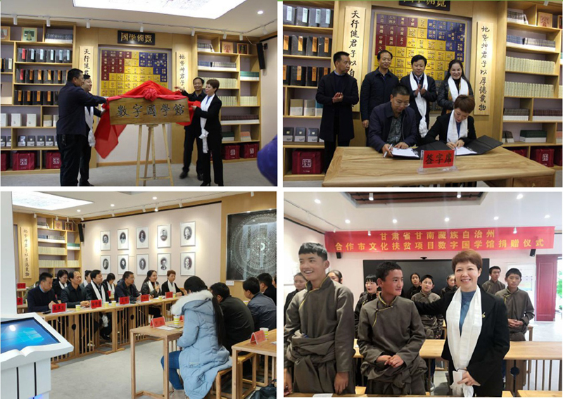 岁在庚子,季于深秋,10月26日,一场简洁而隆重的“数字国学馆”落成及捐赠交接仪式分别在甘肃省甘南藏族自治州合作市青少年活动中心与夏河县文化图书馆两处落成地举行,这是为贯彻落实中央决战决胜脱贫攻坚而实施“文化扶贫”的一项具体举措,合作市和夏河县政府各级领导、党政干部、教育界师生代表各40余人分别参加了活动,捐赠方中关村教育基金会及中海油公益基金会领导出席会议并致辞,会议最后由承建方“国学时代”提供了一堂传统文化示范课。海南省妇联许振凌副主席一行六人专程赴甘南实地考察和调研了“数字国学馆”项目。