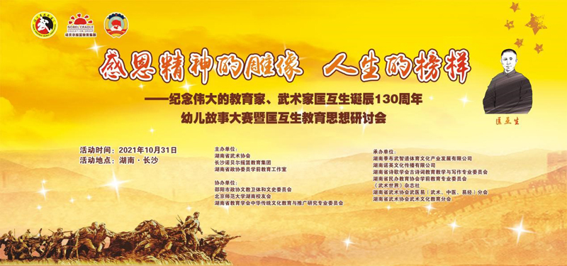 2021年10月31日,“感恩精神的雕像,人生的榜样——伟大的教育家、武术家系列活动”在诺贝尔摇篮湘江新园的舞台上举行。活动分为纪念匡互生诞辰130周年幼儿故事大赛和匡互生教育思想研讨会两个章节。上午来自诺贝尔摇篮教育集团的孩子们通过演讲、故事、表演等生动活泼的形式,以实际行动来纪念和缅怀匡互生先生,向匡互生先生致敬。下午,由湖南省武术协会与诺贝尔摇篮教育集团、湖南省政协委员学前教育工作室,携手主办的“感恩精神的雕像、人生的榜样——纪念伟大的教育家、武术家匡互生诞辰130周年匡互生教育思想研讨会”更是高朋满座,嘉宾们围绕匡互生教育思想展开了深刻地思想交流。