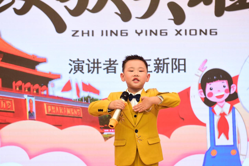图:诺贝尔摇篮早教研究所实验幼稚园王新阳小朋友带来的故事《神奇的教育家——匡互生》表演