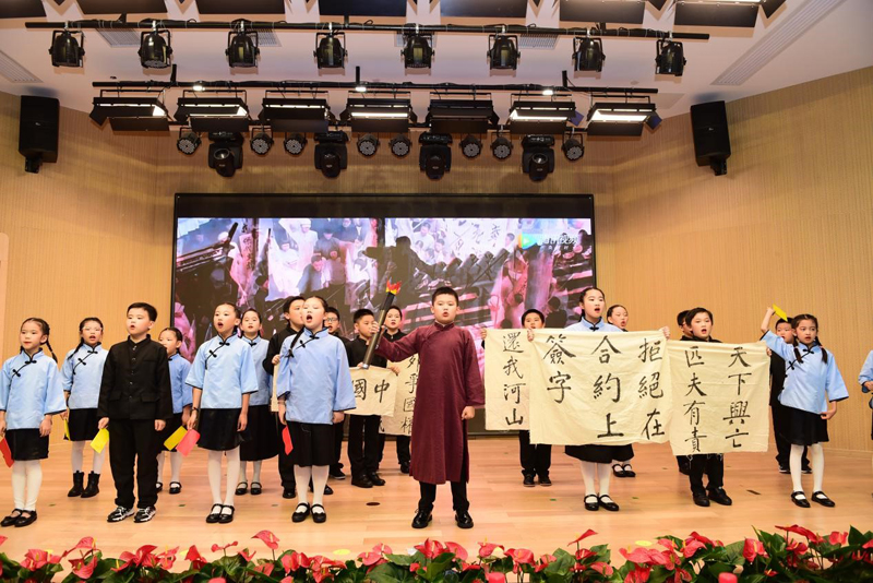 图:诺贝尔摇篮小学生代表们带来的榜样情景剧《五四先驱匡互生》