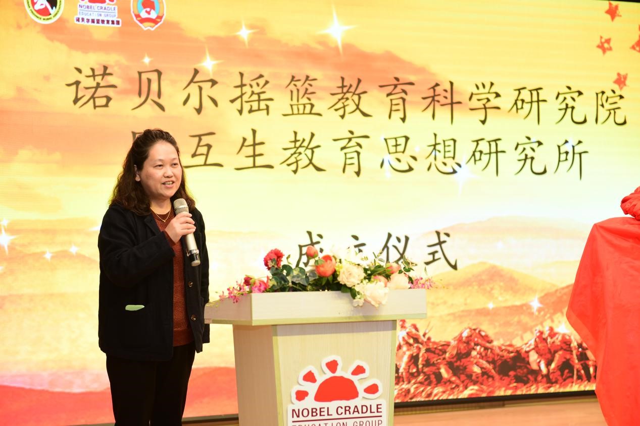 随后,在湖南省教科院党委书记王玲女士的主持下,诺贝尔摇篮教育科学研究院匡互生教育思想研究所正式成立。诺贝尔摇篮小学校长阳玉涓女士怀着激动与喜悦之情说道:“匡互生先生不仅仅是五四运动中‘火烧赵家楼’的英雄,更是一位值得钦佩的教育先驱,一位有理想、有干劲为国为民的教育家。他一生为教育奔波,矢志为教育改革,创办了著名的立达学园。今后,诺贝尔摇篮必定会大力发扬、宣传、传承匡互生先生的教育思想,认真学习反映匡互生先生教育思想的书籍,结合其个人成长经历,不断增强对匡互生教育思想的情感认同和理论认同,加深对匡互生教育思想的理解把握。”