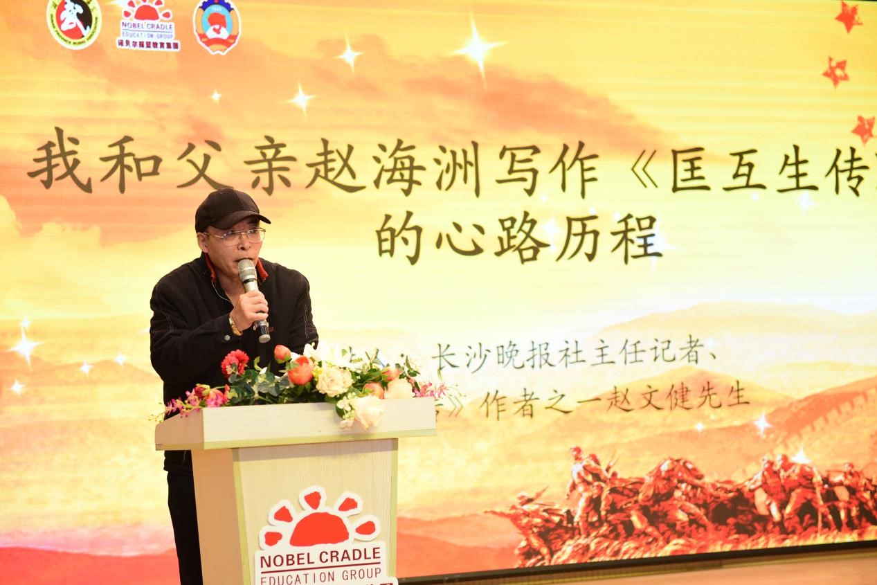 研讨会主题发言环节,长沙晚报社主任记者,《匡互生传》作者之一赵文健先生清晰地回忆了与父亲赵海洲写作《匡互生传》的心路历程,恍如昨日,仍历历在目,引起了与会领导、老师们的强烈共鸣。来自北京师范大学湖南校友会秘书长、湖南省工商联商协会党委二级调研员湛建阶先生,湖南第一师范学院副教授鲁晓川先生和诺贝尔摇篮小学晏红辉女士分别以《匡互生在北京高等师范学校》、《匡互生在湖南省立第一师范学校》为题发言,再现了匡互生先生在不同的阶段取得的高度成就。“匡互生先生的教育思想值得我们深入发掘、研究与弘扬”邵阳市匡互生研究专家、《匡互生文集》主编李少全先生在会上谈及匡互生及其他的教育思想时表示。来自诺贝尔摇篮小学刘晓燕老师则从武林中人匡互生的角度出发,进行精彩的发言,表示了敬仰之情。