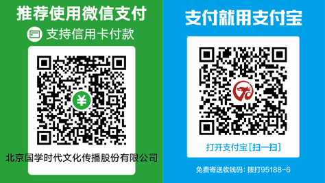 您可以使用微信或支付宝扫描下方二维码进行支付,并备注产品名称及使用人姓名。如需开具发票请将开票信息发送邮件至:gx@guoxue.com,默认开具电子发票,如需开具纸质发票请注明邮寄地址及收件人联系方式。