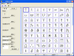 本软件考虑到甲骨文的特殊性,如形、音、义的不确定性以及使用的频率,我们采用了可视化的输入法。通过此输入法可以完成甲骨文的输入。