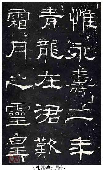 《礼器碑》,全称《汉鲁相韩敕造孔庙礼器碑》,又称《汉明府孔子庙碑》、《韩敕碑》等。现藏山东曲阜孔庙,桓帝永寿二年(公元156年)刻。清王澍《虚舟题跋》评:“瘦劲如铁,变化若龙,一字一奇,不可端倪。”《礼器碑》笔画以瘦硬见长,但雄健有力,结体劲拔谨严,整体风格清刚峻迈、端庄秀洁。