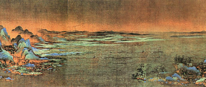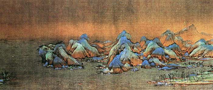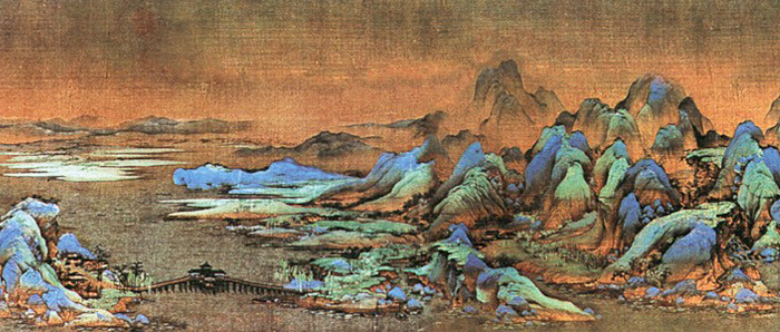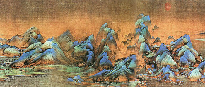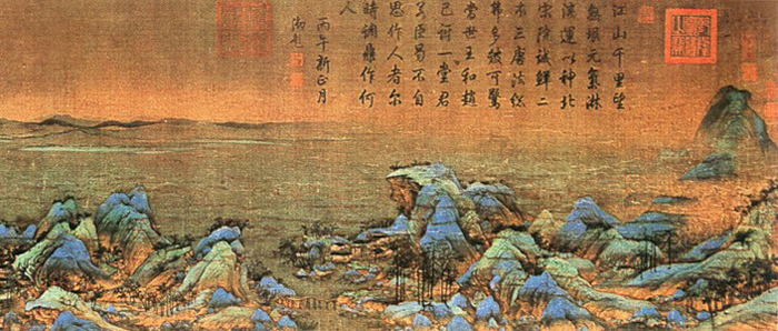 王希孟(1096~?),宋徽宗时入禁中文书库。曾得赵佶亲授笔墨技法,技艺日渐精进。他完成宏幅巨制《千里江山图》时才十八岁,不久便英年早逝。
