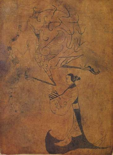 从上个世纪20年代的中期开始,随着湖北、湖南、河南、安徽等地楚墓的不断发掘,把一个神奇的艺术天地,从两千年以前的地层中展现出来,使我们有缘领略到上古时期南方楚人奇异而丰富的艺术创造。那是怎样的一个艺术世界哟,那种奔放、跃动、飘洒、流动的原始浪漫主义气质,那种镂金错彩、繁复富丽之美,那种带有原始艺术的奇诡、怪诞的造型特质和巨大的幻想性、象征性、隐寓性的艺术观念,实在令人赞叹不已。每当我们为楚美术奇幻的形制、跃动的线条和绚丽的色彩而感慨的时候,我们深深地被楚人的创造心智所震撼!我们不能不与那些古老的图式、形象、线条、色彩、韵律产生心灵上的共鸣。这就是楚美术的神奇魅力,也是上古时期人类心智和精神的永恒呈现。如果把楚美术放在世界文化大视野中去透视,楚美术所取得的这种成就,在上古时期也是具有世界意义的。诚如有的学者所言,“楚艺术不惟明显区别于中国东周时期北方地区的艺术,也是与人类在古代世界所有杰出的艺术创造,与早于它的古代埃及艺术、巴比伦艺术、以及与它大致同期的古希望艺术、稍后的罗马艺术相互辉映的”。(参见皮道坚:《楚艺术史》,第5~6页,湖北教育出版社,1995年)的确如此,楚美术之于中国艺术发展史,乃至整个世界艺术发展史的意义,在于它以奇丽无比的想象和极富个性的创造构成了一个特殊的艺术天地,折射出了楚人在上古时期的物质生活和精神世界状况,那些具有神秘感和形式美的图式,作为人类永不复返的阶段而具有无穷魅力。
