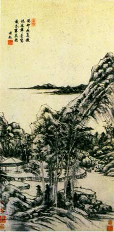 弘仁除精山水,还兼写梅花和双钩竹,又工诗,善书法,有诗书画 “三绝”之誉。书法学颜真卿楷书,倪云林的行书,还会隶书和篆书。诗多为五、七言绝句,常题画上,死后友人收辑成《画偈》。
