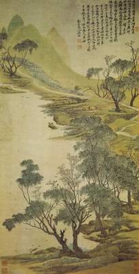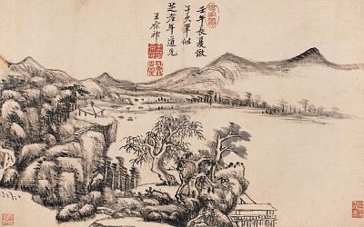 总之,王原祁承董其昌及时敏之学,受清最高统治者之宠,肆力山水,领袖群伦,山水格局面目影响后世,弟子颇多,形成娄东派,左右清代三百年画坛,成为正统派中坚人物。惜一生只知临模黄公望,笔墨钝滞,格局平庸,遂造成陈陈相因,千篇一律,无复清新气象。清代山水画衰弱,此为一大原因。