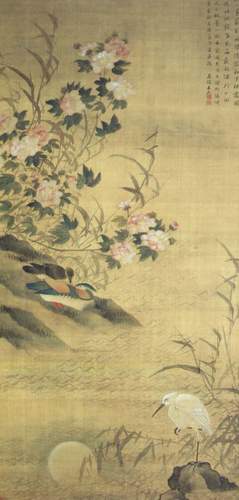 鸳鸯白鹭图 绢本、设色,纵156.3厘米,横74.1厘米,上海博物馆藏。