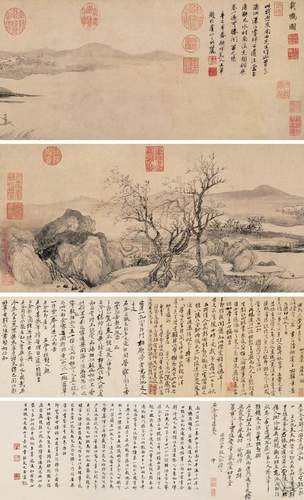 图中有恽格好友、“四王“之一王翚的题跋:“此我老友南田先生作也,笔意潇洒,深得李便古遗法,当与唐解元水村图后先颉顽。展卷一过,可胜闻笛之悲。辛巳早春耕烟散人王翚题于虞山之北麓”。卷末并有恽寿平致王翚的信札两通,第一札是抒发与“石谷子离索十年,兴趣零落,同一感慨”;第二札感叹“石谷子者拟议形容直令人可歌可泣”。