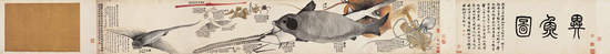 异鱼图 设色、纸本、 手卷,画心纵35.5厘米,横22.3厘米。
