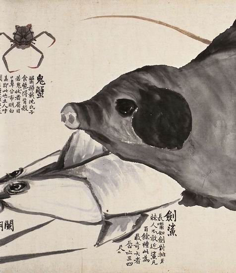 趙之謙《异鱼图》中“剑鱼”、“鬼蟹”