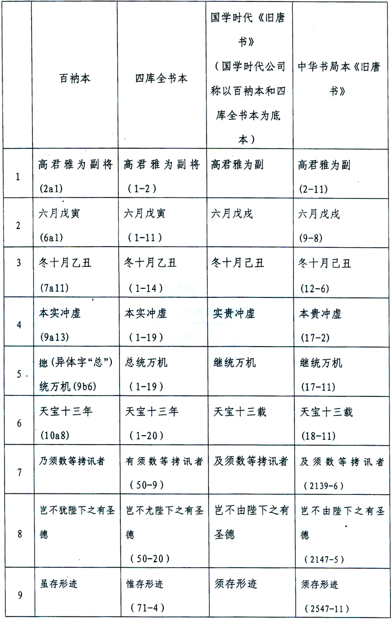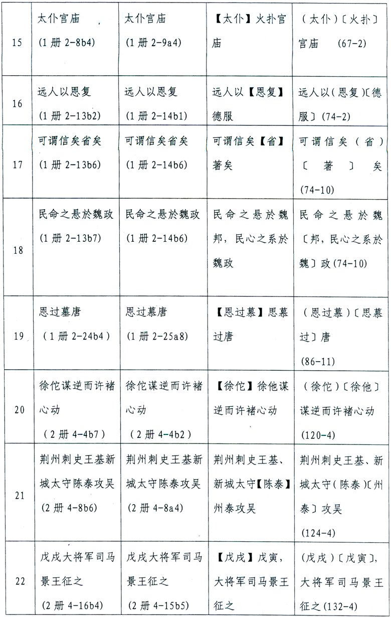 该类比对结果包括《旧唐书》第4处、《三国志》第10、11处差异。
