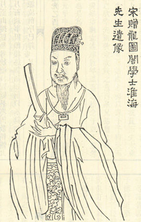 秦观(1049-1100),字太虚、少游,号淮海居士,高邮人,北宋文学家。宋神宗元丰八年(1085年)进士,曾任太学博士、秘书省正字、国史院编修官。政治上倾向旧党,哲宗时“新党”执政,被贬为监处州酒税,徏郴州,编管横州,又徙雷州,至藤州而卒。