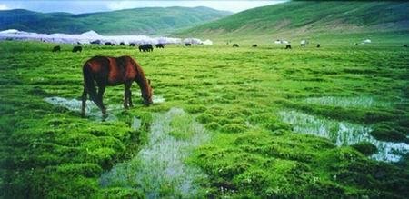 前两句描绘的是放马大泽的壮阔风光。也许是在一次血肉横飞的战斗之后,也许是在“金山西见烟尘飞”的南下之前。总之,这是一个短暂的间歇。战士们利用这个间歇,把战马放到大泽之中去饮水食草。大泽,指大片的浅水滩。这里有草有水,草肥水美,是个理想的放牧之所,战马会在这里吃得膘肥体壮。诗人在此不仅仅是在描绘放马大泽、草肥水美的少数民族地区特有的壮阔风光,而且意在含蓄地表现以下两点:一是写出少数民族骑兵与战马之间的亲密关系。鲜卑部队多骑兵。骑兵与战马,是征战中的战友,也是生活中的伙伴。少数民族战士的剽悍、迅猛,往往是借助战马表现出来的:“匈奴草黄马正肥,金山西见烟尘飞”(岑参《走马船行送封大夫出师西征》),“所向无空阔,真堪托死生”(杜甫《房兵曹胡马》),许多古代诗人描绘的正是骑兵与战马之间生死相依的关系。也正因为在战斗中生死相依,所以在平时,骑兵对战马也就关爱备至,尽可能选择草肥水美的“大泽”让它“着膘”。二是用战马的健壮来反衬骑兵的英武,为下面两句正面描写骑兵暗中做好铺垫。北朝乐府中常用战马的矫健来衬托骑兵的英武,如《琅琊王歌》:“快马高缠鬃,遥知身是龙。谁能骑此马?唯有广平公”;相反,也常用马的羸弱来衬托人的贫穷,如《幽州马客吟》:“快马常苦瘦,剿儿常苦贫。黄禾起羸马,有钱始作人”。这首《企喻歌》采取的是同样的方法:用牧放于大泽之中膘肥体壮的战马,来衬托集结于草原之上英武剽悍的骑兵战士,是“健儿”与“快马”相得益彰。