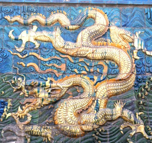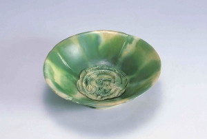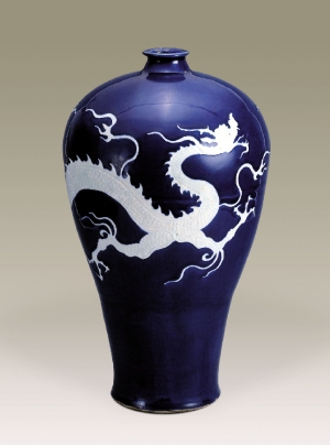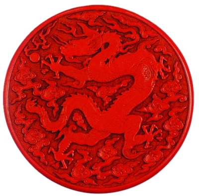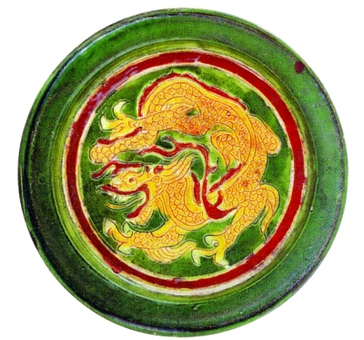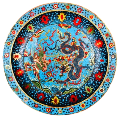 ▲清代掐丝珐琅龙凤戏珠纹盘