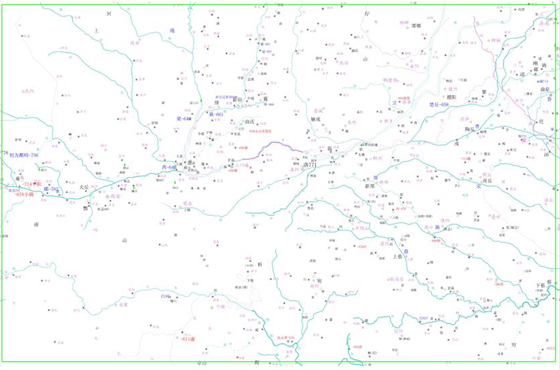 最后,将“谭图”中没有标注的地名按2.2.4的方法标入于上一步制作出来的“基础地图”中,并把基础地图中的“今地名”全部换成2005年的地今名。