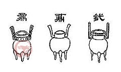 国学鼎绝大,谓之鼐;圜弇上,谓之鼒;附耳外,谓之釴;款足者,谓之鬲; <鬲曾> 谓之鬵。鬵,鉹也。 鬲曾>