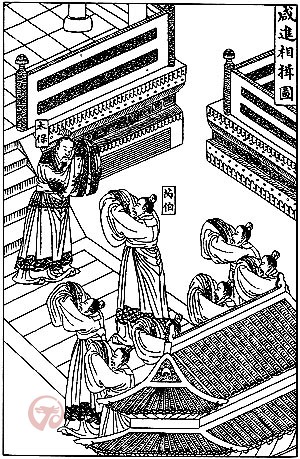 国学王出,在应门之内,太保率西方诸侯入应门左,毕公率东方诸侯入应门右,皆布乘黄朱。宾称奉圭兼币,曰:“一二臣卫,敢执壤奠。”皆再拜稽首。王义嗣,德答拜。太保暨芮伯咸进,相揖,皆再拜稽首曰:“敢敬告天子,皇天改大邦殷之命,惟周文武诞受羑若,克恤西土。惟新陟王毕协赏罚,戡定厥功,用敷遗后人休。今王敬之哉!张皇六师,无坏我高祖寡命。”
