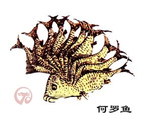 国学又北四百里,曰谯明之山。谯水出焉,西流注于河。其中多何罗之鱼,一首而十身,其音如吠犬,食之已痈。有兽焉,其状如貆而赤豪,其音如榴榴,名曰孟槐,可以御凶。是山也,无草木,多青雄黄。