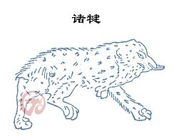 国学又北二百里,曰北岳之山,多枳棘刚木。有兽焉,其状如牛,而四角、人目、彘耳,其名曰诸怀,其音如鸣雁,是食人。诸怀之水出焉,而西流注于嚣水,其中多鮨鱼,鱼身而犬首,其音如婴儿,食之已狂。