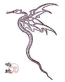 国学又西三百里,曰鲜山,多金玉,无草木。鲜水出焉,而北流注于伊水。其中多鸣蛇,其状如蛇而四翼,其音如磬,见则其邑大旱。