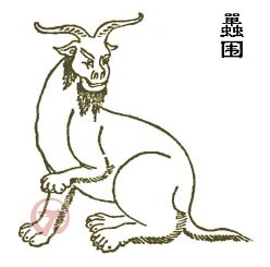 国学又东南二十里,曰乐马之山。有兽焉,其状如彙,赤如丹火,其名曰犭戾,见则其国大疫。