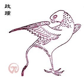 又西二十里,曰复州之山,其木多檀,其阳多黄金。有鸟焉,其状如鸮,而一足彘尾,其名曰跂踵,见则其国大疫。