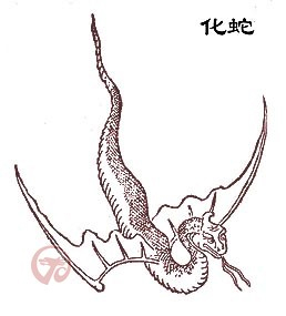 国学又西三百里,曰阳山,多石,无草木。阳水出焉,而北流注于伊水。其中多化蛇,其状如人面而豺身,鸟翼而蛇行,其音如叱呼,见则其邑大水。