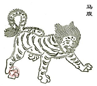 国学又西一百二十里,曰蔓渠之山,其上多金玉,其下多竹箭。伊水出焉,而东流注于洛。有兽焉,其名曰马腹,其状如人面虎身,其音如婴儿,是食人。