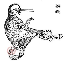 国学又东南三百里,曰丰山。有兽焉,其状如蝯,赤目、赤喙、黄身,名曰雍和,见则国有大恐。神耕父处之,常游清泠之渊,出入有光,见则其国为败。有九钟焉,是知霜鸣。其上多金,其下多榖、柞、杻、橿。