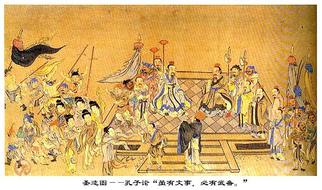 国学孔子之时,周室微而礼乐废,诗书缺。追迹三代之礼,序书传,上纪唐虞之际,下至秦缪,编次其事。曰:“夏礼吾能言之,杞不足徵也。殷礼吾能言之,宋不足徵也。足,则吾能徵之矣。”观殷夏所损益,曰:“後虽百世可知也,以一文一质。周监二代,郁郁乎文哉。吾从周。”故书传、礼记自孔氏。