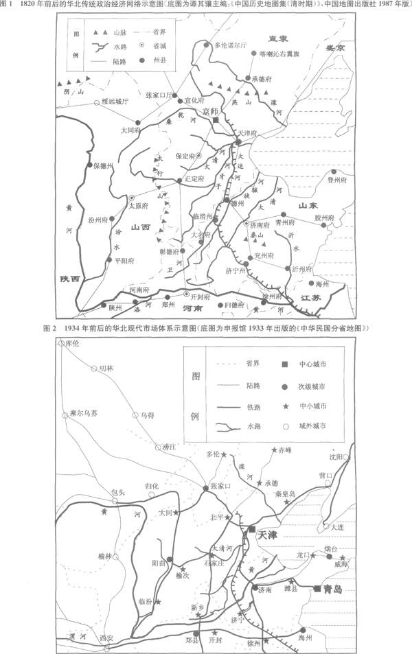 然而,美中不足的是,已有研究大多只注重从时间维度上考察近代华北经济变革的纵向历史画卷,而缺乏对华北不同地区之间经济发展差异、产业结构调整、市场格局演化、华北在全国经济地位变迁等课题的空间维度探索。深层剖析上述历史经济地理命题,有助于华北地区相关学术研究与建设实践的进一步开展。