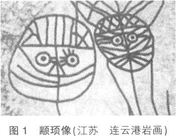 丁山先生说,颛顼、尧、舜、俊“其实都是高祖夔一名的分化”,而高祖夔的原型是鸱鸮(猫头鹰),是太阳神的生命意象。喾“自言其名曰鵕”,《大戴礼.五帝德》:“鼓亦化为鵕鸟,其状如鸱。”既然喾即“鼓”,俱状如“鸱”,那么,高祖夔、舜、颛顼、喾,其原型皆为鸱鸮无疑。如果我们将此种考证与连云港将军崖岩画中的鸮形拟人黥面像两相对照,就不难看出它与前述的颛顼玉兆通渠之像的特征十分吻合(见图1),应当就是东夷人的祖神——颛顼的形象。