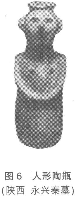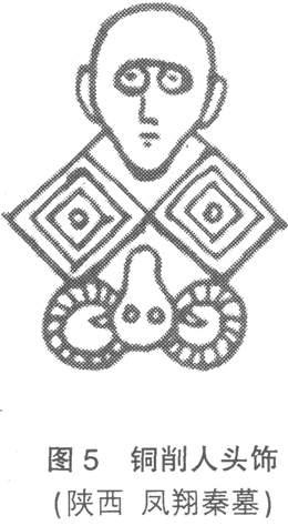 (一)秃头武士形象与东胡和斯基泰人同俗。鹿石中武士形象的族属和身份,究竟如何来判定?从史料看。斯基泰人族属的构成不是单一的。按照西方的说法,斯基泰人是来自亚洲,操伊朗语的伊朗人种。也有资料说,斯基泰人蓄大胡子,戴尖顶帽,穿长上衣,束腰带,着长裤。但在希罗多德的《历史》一书中,又曾这样描述斯基泰人的形象:“据说这些人不分男女生来都是秃头,他们是长着狮子鼻和大下巴的民族。”如果我们将鹿石中的秃头武士形象与之相较。尤其是秃头和大下巴,几乎完全一样,这的确是蒙古人种的特征。若再将近年来秦王大墓中发现的两件秦人秃头人像拿来比照,更不难发现他们是何其相似(见图5、图6)!这种秃头的习俗正是黄河以北东胡人的一种民风——“以髡(秃)顶为轻便”,其与西方人认为的“斯基泰人为蓄大胡子的伊朗人种”迥异,却与希罗多德所说相同。显然,这表明斯基泰人的组成不是单一的。至少是包括了伊朗种和蒙古种的民族。如果说,秦民族的先祖戎胥轩就是斯基泰人,那么,其后裔飞廉族定会与蒙古种的斯基泰人有某种亲缘关系。事实上,飞廉的“鹿身”已经透露出融人了斯基泰人鹿图腾的某种信息。