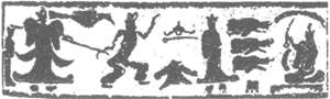 根据文献记载和考古资料看,钩镶主要流行于汉代,大约到东晋晚期。钩镶仍然继续使用。晋张华在《博陵王宫侠曲二首》中云:“……吴刀鸣手中,利剑严秋霜。腰间叉素戟,手持白头镶。腾超(一作起)如激电,回旋如流光,奋击当手决……。”(《先秦汉魏晋南北朝诗》上,中华书局。1983。612页)另外,1972年3月,在江苏镇江市发掘了一座东晋晚期的画像砖墓,出土了一批画像砖。其中有一“兽首人身画像砖”,其画面为:兽首有双尖耳,双角,圆睛凸出,左手前伸执钩镶,右手向后张握环柄铁刀,两腿前后分开,一曲一直呈箭步。腿臂上均缠有带束(见图10)(《镇江东晋画像砖墓》,《文物》1973年第4期)。尽管该画像砖所表现的是神话故事,但是神兽所持兵器,当是现实生活的反映。因此可以认为。到东晋晚期钩镶仍然继续使用,以后逐渐退出战场(注:文中图3、4、5、7、8、9均录自张道一著《画像石鉴赏》,重庆大学出版社,2009,201、284、236、234、236页)。