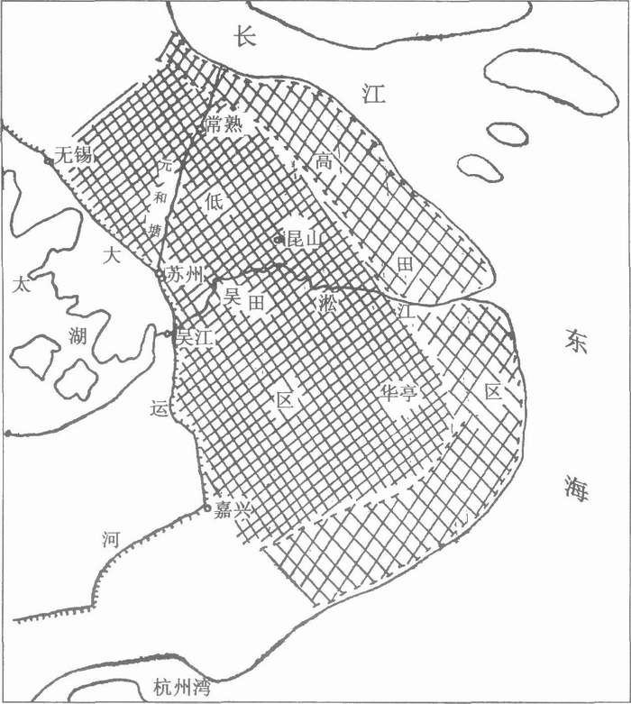 太湖平原开河筑围的历史很早。相传公元前12世纪,周太王之子太伯、仲雍逃奔江南,建立吴国,在无锡东南开太伯渎,以备旱潦[19]。春秋时吴、越国分治太湖平原,从事治水辟田工作。开凿有胥溪、胥浦、渔浦、棠浦等众多水道[20],故《史记·河渠志》说:“于吴,则通渠三江五湖。”《越绝书·吴地传》载有吴、越在苏州开辟的农田名称。如吴国辟有大醪、鹿陂、胥卑虚、胥主疁等农田,“疁”“虚”有四面高中间低之意,“鹿陂”是堤内成田,表明已有筑堤围田的迹象;越国在淀泖地区经营垦殖,灭吴后,在地门外波洋中筑围造田,称“世子塘”“洋中塘”等。战国时楚进一步经营吴地,河道开凿增多,同时在江阴、武进、无锡高亢平原,开凿申浦等河,垦拓农田,设置上下屯经营。[21]