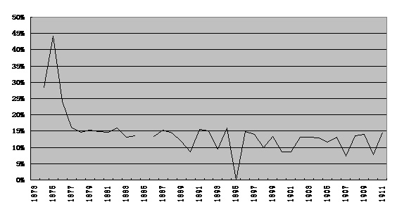 由上表可知,其一,招商局通过运漕所获得收益,在整体经营活动中所占比例,除最初的四年外,其他年份均要小于20%,可见漕粮海运对于招商局前期的发展,显得尤为重要。其二,光绪三年(1878年)以后,除个别年份外,招商局运漕所获收入,在整个经营活动中,一般都在9%至15%之间摇摆,虽然数量不大,但系一稳定的收入来源。其三,清朝灭亡之前,尽管招商局运漕收益因清廷的多次扣减而受到损失,此笔收益仍是招商局收入的重要部分,这主要因为清朝后期,招商局承运的漕粮在总量上有了较大的增加,使得相对数并不少。