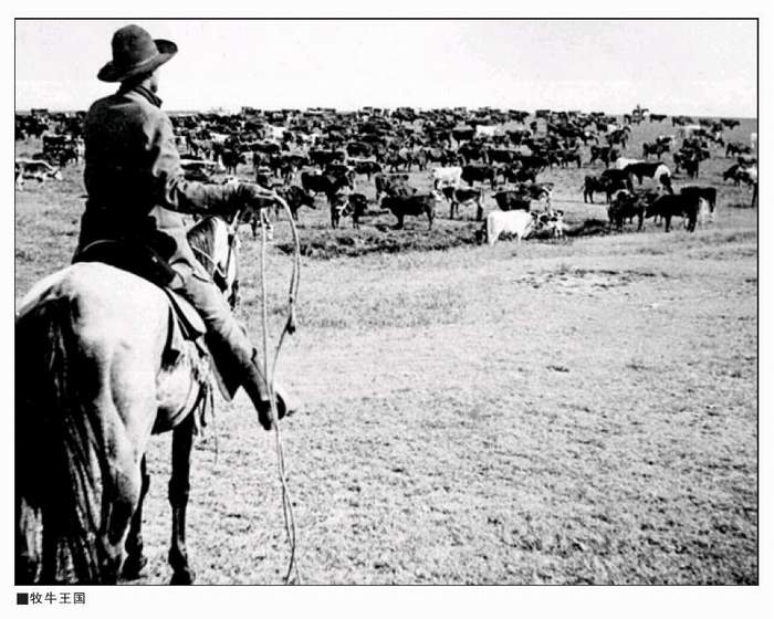 “畜牧王国”的兴起促进了“边疆的消失”。成千上万的牧牛场主、牧牛人和牛仔先于拓荒农场主,定居于昔日无人敢驻足的大平原的荒野上,使这片从未被人所识、相当于“半个欧洲”的土地成了牧牛人的边疆。牧牛业成为内战后美国最具魅力和最赚钱的行业之一,在西部开创了一个“牧牛人的时代”。“畜牧王国”的兴起,使美国西部边疆中少有白人移居者居住的空白地带基本上得到填补。西部牧业边疆与矿业边疆、农业边疆逐渐融合,合为一体,形成别具特色的西部经济和社会结构。